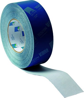 TESCON VANA for a secure and permanent airtight seal of overlaps between INTELLO® membranes, joints between membranes and smooth, non-mineral surfaces. Also suitable for sealing joints between wood-based panels.